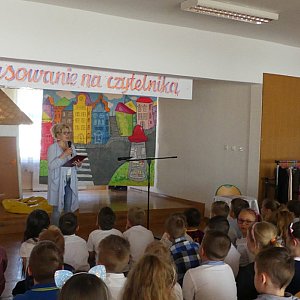 Kończąc, pani dyrektor podziękowała wszystkim pozostałym zaangażowanym w przygotowanie tej imprezy - pani Honoracie Rodobolskiej odpowiedzialnej za aranżację muzyczną, Olimpii Kroczak za pomoc techniczną oraz niesamowitym młodym aktorom, bez których to wielkie wydarzenie nie byłoby tak atrakcyjne. Dzieci z pewnością na długo zapamiętają ten cudowny dzień, bo przecież jest to ważna uroczystość dla każdego małego miłośnika książek.