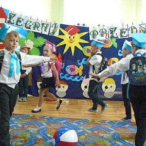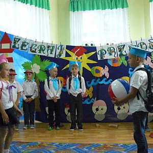 Był to czas niezwykły i niezapomniany, zarówno dla dzieci, rodziców, jak i pań. Skończył się, bowiem 4 - letni okres przyjaźni, wspólnych zabaw i spotkań, wspólnej pracy. Dzieci, z maluszków, zagubionych i nieśmiałych, stały się samodzielnymi, odważnymi starszakami, pełnymi pomysłów, ciekawymi świata, chętnymi do podejmowania nowych, coraz trudniejszych zadań. Skończył się beztroski okres i nadszedł czas na przyjęcie innych obowiązków. Przedszkolaki pod kierunkiem p. Wiesławy Stańczyk przygotowały specjalnie na tę okazję występ artystyczny. Był Polonez, wiersze, tańce i piosenki. Na pamiątkę tego wydarzenia dzieci otrzymały pamiątkowe dyplomy, książki i zdjęcia. Były także życzenia i podziękowania ze strony p. Dyrektor Bożeny Lorent oraz Rodziców, nie zabrakło również łez wzruszenia. Również w tym dniu pożegnaliśmy odchodzącą na emeryturę p.Krystynę Marszałek. Dziękujemy p. Krysi, rodzicom za wspólnie spędzony czas, pomoc i wsparcie. Dzieciom natomiast życzymy udanych wakacji, samych sukcesów w szkole, uśmiechu, na co dzień oraz nowych przyjaźni.