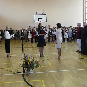 Trzeci piątek czerwca to dzień, na który każdego roku czekają uczniowie i ich rodzice. Tego dnia kończymy bowiem wielomiesięczne zmagania z nauką, przygotowania do sprawdzianów i kartkówek. I tak 22 czerwca cała społeczność Publicznej Szkoły Podstawowej nr 6 im. Tadeusza Kościuszki w Brzegu zebrała się w sali gimnastycznej, by uroczyście pożegnać mijający rok szkolny. Swą obecnością zaszczycił nas Burmistrz Miasta pan Jerzy Wrębiak oraz ksiądz proboszcz Marcin Czerepak, członek Zarządu Opolskiego Związku Piłki Nożnej pan Stanisław Dyja, przewodnicząca Rady Rodziców pani Magdalena Rybacka, rodzice i najbliżsi naszych uczniów.
