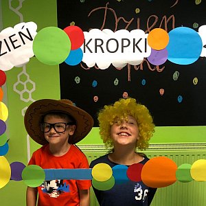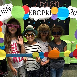 Dzień Kropki jest z pewnością wspaniałym świętem kreatywności, odwagi i zabawy. W tym roku cała społeczność PSP nr 8 w Brzegu przyłączyła się do tej międzynarodowej akcji. 14 września cała szkoła zamieniła się w krainę, której główną rolę grała wspomniana już Kropka. Nauczyciele bibliotekarze: Weronika Tworowska i Szymon Gancarczyk wraz z panią Dorotą Wojciechowską, nauczycielką klasy 2a, przygotowali szereg działań, które pomogły dzieciom odkryć talenty, poznać ich mocne strony i zaprezentować je na forum klasowym i szkolnym. Motywem przewodnim była oczywiście kropka. Cała społeczności szkolna w tym dniu tworzyła kropkowe dzieła sztuki, rozwiązywała matematyczne łamigłówki i labirynty, szukała kropek ukrytych w ortograficznych zakamarkach, tworzyła, malowała i bawiła się okrągłą figurą. Na przerwach uczennice z klasy 6b zachęcały dzieci i młodzież do pisania motywacyjnych cytatów i zdań "prosto z serca" i w nagrodę fotografowały wesołe buzie w specjalnie na ten dzień zaprojektowanej kropkowej ramce. Wszystkie klasy edukacji wczesnoszkolnej wzięły udział w kropkowych podchodach, które doprowadziły dzieci do biblioteki szkolnej. Tam, oprócz czytanej lektury Petera Reynoldsa czekała na dzieci biała kartka papieru, która szybko zamieniła się w kropkowe dzieło sztuki - dzieło wyjątkowe, gdyż każda kropka wymalowana na nim została zaprojektowana przez ucznia z najmłodszych klas.