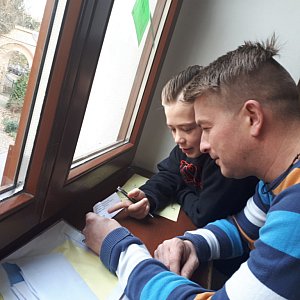 Zabawa rozpoczęła się o godzinie 11.00, uczestnicy losowali kolejność - tzw. minuty startowe i z zegarmistrzowską precyzją zespoły dwuosobowe uczeń + rodzic ruszali, by odnaleźć ukryte zadania, a następnie zmierzyć się z królową nauk. Dla każdej drużyny ostatnia minuta przed startem była bardzo emocjonująca! Potem odliczanie ostatnich sekund... 3, 2, 1 - start! Część konkursowa trwała ponad dwie godziny i nie było łatwo ;-)