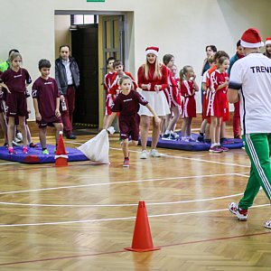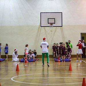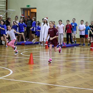 ,,Mała młodzież" , bo właśnie tak należy nazywać uczestników tegorocznego turnieju, rywalizowała ze sobą w 8 różnych konkurencjach, które wymagały od nich ogromnego wysiłku. Nasi mali uczestnicy z każdym zadaniem poradzili sobie brawurowo, wszystkie ćwiczenia wykonywali z dokładnością, a co najważniejsze z uśmiechem na twarzy. Podczas rozgrywek towarzyszył im Święty Mikołaj, którego zadaniem było przyznać dwa dodatkowe punkty ( za najpiękniejszą bombkę na choince oraz za najstaranniejszy napis ,, Mikołaj i ja") oraz jego śnieżynki, uczennice klas 3 naszego liceum. Bohater naszych zawodów za każdym razem miał ogromny dylemat, której pracy przyznać dodatkowy punkt, bo jak twierdził ,, każda zasługiwała na wyróżnienie".