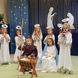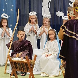 W godzinach porannych Jasełka obejrzały wszystkie przedszkolaki oraz pracownicy przedszkola, natomiast w godzinach popołudniowych odbył się występ dla Rodziców dzieci. Przedszkolaki znakomicie wcieliły się w role Maryi i Józefa, pasterzy, królów, aniołów, świętych postaci. Inscenizacja przeplatana była pięknymi kolędami i pastorałkami. Kolejny raz okazało się, że takie wspólne spotkania, emocje i przeżycia zbliżają ludzi, a dzieciom pokazują jak ważna jest tradycja świąt Bożego Narodzenia i jak bardzo rodzinne jest to święto.