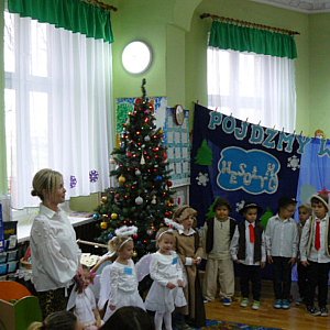 20 grudnia w przedszkolu w Krzyżowicach odbyło się przedświąteczne spotkanie wigilijne. Dzieci zaprezentowały swoim rodzicom oraz zgromadzonym gościom JASEŁKA. Po przedstawieniu bożonarodzeniowym Pani Dyrektor Bożena Lorent złożyła wszystkim zgromadzonym życzenia świąteczne. Dzieci wręczały swoim bliskim piękne upominki oraz kartki świąteczne. Dzieliły się opłatkiem i składały życzenia. Rodzice byli zachwyceni występami swoich pociech. Po uroczych występach przedszkolaki wraz z rodzicami i paniami zasiadły do wspólnego stołu, częstując się przygotowanymi przez rodziców świątecznymi potrawami. Nie zabrakło też prezentów pod choinką dla każdego dziecka. Świąteczny nastrój podkreślały niecodzienne stroje dzieci, bożonarodzeniowa dekoracja, blask świec i płynące z głośników kolędy.