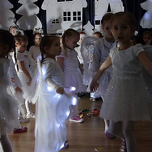 Spektakle przygotowane przez swoje panie i dzieci pełne przedświątecznych emocji wprowadziły wszystkich w magie zbliżających się świąt. Atmosfera w tych dniach była prawdziwie świąteczna i bardzo gorąca. Miesiąc grudzień w naszym przedszkolu był poświęcony tradycjom bożonarodzeniowym dlatego też dzieci miały okazję aby przypomnieć sobie polskie obrzędy i tradycje związane z tymi świętami a także kilka popularnych kolęd, takich jak Cicha noc ,Do szopy, hej pasterze, Przybieżeli do Betlejem Pasterze" i wiele, wiele pastorałek, doskonaliły również motorykę małą poprzez zadania grafomotoryczne i zabawy plastyczne.