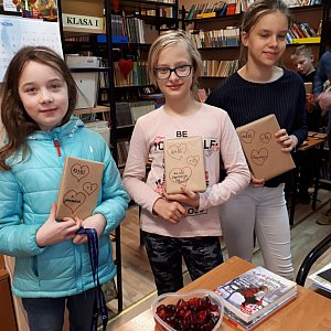 Akcja, chętnie obchodzona w bibliotekach miejskich i księgarniach, i w tym roku doskonale sprawdziła się w szkolnej bibliotece. Książki wypożyczały się jak świeże bułeczki. Randka z książką i symboliczne słodkie serduszko, wręczane w tym dniu w bibliotece, skradły niejedno dziecięce serce. Przed uczniami Ósemki wiele ciekawych inicjatyw czytelniczych. Mamy nadzieję, że ta zabawa dowiodła, że z książkami jest tak jak z ludźmi - nie warto oceniać ich wyłącznie po okładce. Wszystkich zakochanych i tych otwartych na miłość do... książek zapraszamy do szkolnej biblioteki. Kolejne wybranki czekają na randkę każdego dnia.