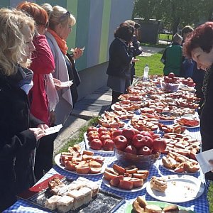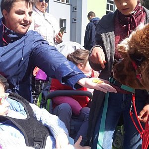 Piórko i Billy z pobliskich Młodoszowic dostarczyli uczniom i nie tylko wiele uśmiechu. Z ogromną cierpliwością poddawali się głaskaniu, przytulaniu i pozowaniu do dziesiątek zdjęć. Bez wątpienia terapia kontaktowa w towarzystwie alpak wspomogła efektywność procesu terapii i rehabilitacji podopiecznych. Zwierzęta na długo pozostaną w ich pamięci ulubionymi bohaterami szkolnych imprez. Kto nie miał dość niespodzianek mógł skorzystać z rozkoszy cukierniczych piknikowego stołu, gdzie wspaniale pachniały i wybornie smakowały przygotowane przez uczniów pieczone jabłka, kruche ciasta z jabłkami oraz jabłkowe krążki w cynamonowym puchu.