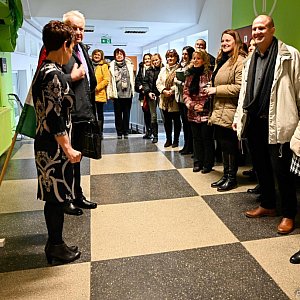 W dalszej części spotkania pan burmistrz Jerzy Wrębiak serdecznie pogratulował dyrektor Publicznej Szkoły Podstawowej nr 8 - pani Lucynie Bończak oraz dyrektor Szkoły Podstawowej im. Mihálya Vörösmarty w Székesfehérvár - pani Makainé Vida Bernadett nawiązania współpracy i wyraził nadzieję, iż rozpoczęta na poziomie szkół współpraca zaowocuje też niebawem współpracą dwóch miast. Następnie pan Dariusz Socha odczytał w imieniu Przewodniczącego Rady Miejskiej pana Janusza Wójcika list gratulacyjny skierowany do pani dyrektor Lucyny Bończak i pani dyrektor Makainé Vida Bernadett. Po wymianie drobnych prezentów, goście zostali zaproszenie do zwiedzania murów naszej szkoły. Mogli podziwiać nowy wystrój korytarzy, sal lekcyjnych, a także obserwować, jak wygląda udział polskich uczniów w lekcjach.