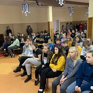 W piątek 31.01.2020r., nagrodzone w konkursie na najlepiej wykonaną prezentację multimedialną pt. "Warto wiedzieć - niebezpieczeństwa czyhające w sieci", uczennice klasy ósmej Oliwia Glegoła, Natalia Grzybowska i Justyna Jeleń podzieliły się swoją wiedzą z młodszymi kolegami i koleżankami. W auli przeprowadziły krótką prelekcję n/t cyberprzemocy. Przedstawiony pokaz multimedialny przypomniał i utrwalił uczniom wcześniej zdobytą wiedzę. Wyjaśniono definicje oraz zaprezentowano formy cyberprzemocy, jak również opowiedziano o konsekwencjach karnych w Polsce.