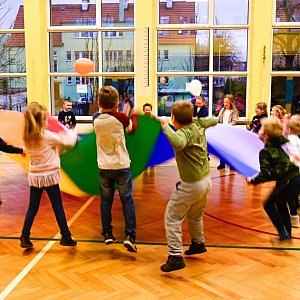 Przybyli licznie mali goście mieli okazję poznać szkołę i nauczycieli. W salach lekcyjnych czekały na nich ciekawe zajęcia przygotowane przez nauczycieli edukacji wczesnoszkolnej pod hasłem "Kreatywne potyczki". Przyszli pierwszoklasiści chętnie brali udział we wszystkich zajęciach: matematycznych "Matgeniusze", polonistycznych "My już dużo wiemy, bo do szkoły idziemy", plastycznych "Co potrafią sprawne rączki", muzycznych "Kącie pląsy i psie figle", czy zajęciach kodowania "Nie tylko na dywanie". Każdy znalazł coś dla siebie. Było to spotkanie pełne niespodzianek - dla gości przygotowano słodki poczęstunek oraz foldery informacyjne o szkole.