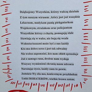 - Wiersz pani Joasi niech będzie naszym wspólnym podziękowaniem za trud i pracę wszystkich walczących z wirusem: