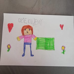 Poprzez swoje pracę dzieci wyraziły swoją wdzięczność za coroczne zapraszanie nas do Biblioteki i organizowanie w tym czasie bardzo ciekawych zajęć. Dzieci dziękują również, że dzięki Bibliotekarzom mogą przenieść się wraz ze swoimi ulubionymi bohaterami z książek w świat fantazji.