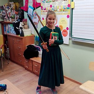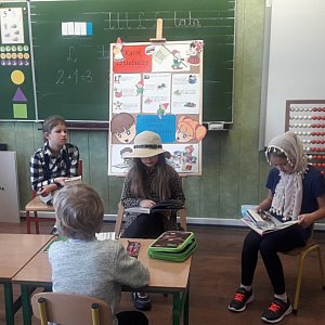 Jedną z akcji czytelniczych o zasięgu ogólnoszkolnym, zainicjowaną przez klasę 3c, było zorganizowanie Tygodnia Głośnego Czytania w dniach 19-23 października. Propagatorem corocznych akcji czytelniczych jest Fundacja "ABCXXI - Cała Polska czyta dzieciom". Hasłem przewodnim minionego tygodnia były słowa Umberto Eco - "Kto czyta książki, ten żyje podwójnie". Od poniedziałku chętni uczniowie naszej klasy wcielali się w ulubionych bohaterów literackich; do szkoły przybyła Pippi Pończoszanka wraz z panem Nilssonem, Lasse z Bullerbyn, Dziewczynka z zapałkami, pan Ambroży Kleks wyposażony w pudełeczko świeżutkich piegów, dwie Nele - małe reporterki uzbrojone w aparaty fotograficzne (jedna z jadowitym skorpionem pod kapeluszem - brrr!), niesforny Mikołajek, kapitan Jack Sparrow - pirat z Karaibów, Merrida Waleczna z nieodłącznym łukiem i Asiunia ze swoimi pamiętnikarskimi zapiskami z czasów wojny. Trzecioklasiści pod czujnym okiem pani bibliotekarki - Anny Nowakowskiej, z zachowaniem reżimów sanitarnych, odwiedzali swoich kolegów i koleżanki z pozostałych klas, prezentowali wzorowo czytane fragmenty ulubionych książek i zachęcali do samodzielnego ich przeczytania. Pani Ania porównała energię i siłę lokomotywy, która ciągnie wagony, do czytania, które rozwija nasze umysły i pobudza do pracy.