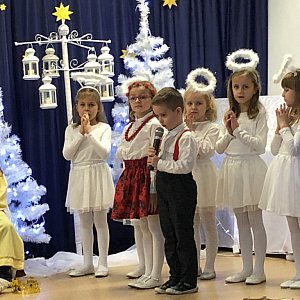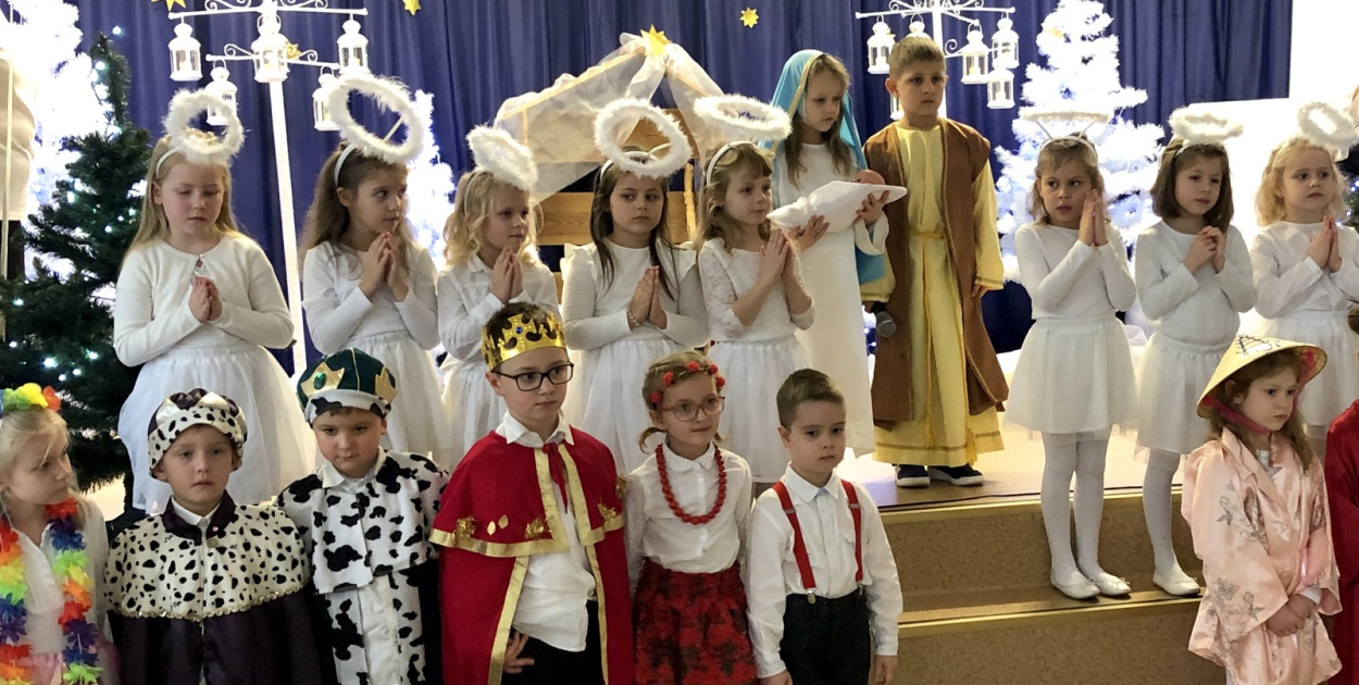 "Cicha noc" - pod takim właśnie tytułem 17go grudnia odbyły się Jasełka przygotowane przez utalentowane dzieci z grupy Motylków oraz ich cudowne Panie. Przy blasku świec i lampionów mali artyści rozpoczęli swój występ. Na scenie obok najważniejszych - Maryi i Józefa, nie zabrakło również pasterzy, aniołów, Trzech Króli, Krakowiaków, a także dzieci z różnych stron Świata. Przedszkolaki z wielkim zaangażowaniem odegrały swoje role. Całość przeplatana była kolędami i pastorałkami. Można było również podziwiać taniec z szarfami, krakowiaka oraz piękną melodię kolędy "Mizerna cicha" wykonanej na flażoletach. Zaskoczeniem była też piosenka zaśpiewana przez dzieci w języku angielskim. Mali artyści prezentowali się na scenie zachwycająco. Kolorowe stroje, elementy dekoracji, a przede wszystkim uśmiechy dzieci sprawiły, że nastrój Świąt udzielił się wszystkim.