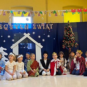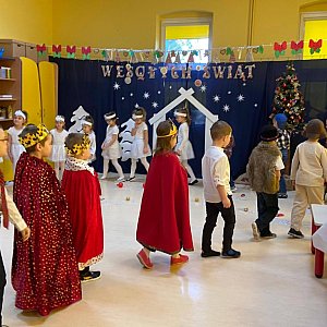 Na tle świątecznej scenografii, dzieci grały na instrumentach i śpiewały kolędy. Na zakończenie mali artyści zostali nagrodzeni wielkimi brawami. Zwyczajem tego pięknego dnia, był grupowy, wigilijny poczęstunek. Nie zabrakło również niespodzianki od Mikołaja, który zostawił dla każdego dziecka prezent pod choinką.