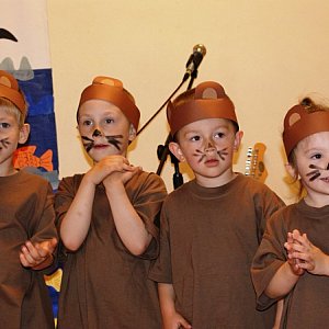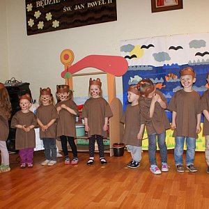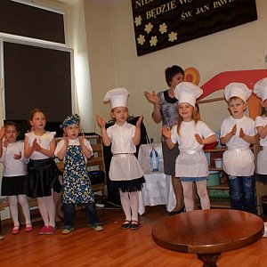 Uroczystość była także okazją do złożenia ukochanym mamom gorących, płynących prosto z serca życzeń w związku z Dniem Matki. Uczniowie zaśpiewali swym rodzicielkom "Życzymy, życzymy...", a potem przyszedł czas na popisy przedszkolaków. Jako pierwsze, w montażu słowno-muzycznym pt. "Przedstawienie na Dzień Mamy", zaprezentowały się maluchy z grupy Aniołek I, które przeobraziły się w słodkie misie. Starsze przedszkolaki upiekły słodkości, które przygotowały z darów serca i szczerych życzeń.