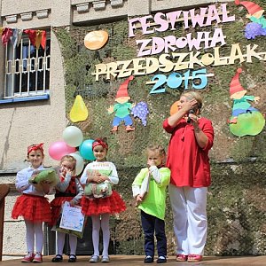 Impreza była podsumowaniem wielu działań edukacyjnych promujących zdrowy styl życia realizowanych w roku szkolnym 2014/2015. Festyn rozpoczęła dyrektor przedszkola Marzehona Augustyn od wyróżnienia laureatów konkursów wewnątrz przedszkolnych. Nagrody za plakat "Przedszkolak zdrowy do zabaw gotowy" otrzymały Amelia Kadłubowska z grupy "Maleństwa" oraz Antonia Chir i Michalina Weber z grupy "Króliczki". Konkurs na najciekawsze menu dla malucha "Zdrowo na talerzu" wygrała Maja Mentel z grupy "Tygryski". Później na scenie zrobiło się głośno i kolorowo. Goście podziwiali umiejętności wokalne, taneczne i recytatorskie dzieci. Wszyscy ze wzruszeniem oglądali występy swoich pociech. W przerwach odbywała się licytacja różnych atrakcji, z których dochód przeznaczony jest na zakup zestawu zabawowego do ogrodu przedszkolnego. Podczas imprezy dzieci miały wiele okazji do wspólnych zabaw sportowych, zręcznościowych i integracyjnych. Ich wysiłki z radością wspierali rodzice uczestniczący w konkursach rodzinnych. W tym dniu nie było przegranych, każdy uczestnik za aktywny udział w atrakcjach festynu otrzymywał wylosowaną przez siebie nagrodę. W programie festiwalu było też bajkowe malowanie twarzy, kącik dla malucha, galeria prac plastycznych oraz festynowa kuchnia. Do degustacji serwowano naleśniki z polewą, deser "owocowy raj", ciasto, grochówkę i kiełbaski z grilla. Wszystkie smakołyki na imprezę przygotowali pracownicy przedszkola a pyszne ciasta i owocowy deser zorganizowali rodzice. Zabawa trwała do późnych godzin popołudniowych. Uczestnikom towarzyszył dobry nastrój i dużo uśmiechu, a piękna pogoda i przyjemna atmosfera sprawiły, że dzień ten był wyjątkowy. "Festiwal zdrowia przedszkolaka" mogliśmy zorganizować dzięki wsparciu rodziców i życzliwości ludzi dobrej woli. Dziękujemy wszystkim sponsorom i rodzicom za zaangażowanie. Przedszkolaki z "Jedynki" otrzymały wsparcie od wielu lokalnych firm i prywatnych przedsiębiorców, są wśród nich: Studio fryzur - Beata Czerniawska, Hotel Best Western, Restauracja Wozownia - Janusz Piotrowicz, Mykita & Szymański - Szkółka Roślin Ozdobnych, Jubiler - Celina Krówczyńska, Bartling - Polska Sp. z o. o., DIAMANTE Mobilne Studio Kosmetologiczne - Katarzyna Lajblich, PHD "Eko" Mieczysław Jeżyk, PPH PIEKARNIA Joanna Telwak, SIMILE Sp. z o. o., DOREX Dorota Tuńska, Nadleśnictwo Brzeg.