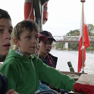 W dniu 18.09.2015r. uczestniczyć w "żywej lekcji" mieli okazję uczniowie klasy 3a integracyjnej PSP nr 8, którzy pod okiem wychowawców Anny Pączek, Delfiny Tobiasz oraz Zbigniewa Marciniaka odbyli rejs statkiem po rzece Odrze. Dzięki uprzejmości pracowników przystani "Marina" trzecioklasiści mogli zaobserwować przyrodę, poznać roślinność oraz zwierzęta żyjące w środowisku rzecznym. Zdobyli dużo informacji o sposobach regulowania biegu rzeki, wykorzystywania jej do transportu różnych towarów, obejrzeli nieczynne już porty przy dawnych zakładach. Dziś już świetnie wiedzą co to jest kanał rzeki, śluza. Zajęcia w terenie były także doskonałą okazją do poznania historycznej wartości naszej rzeki, strategii budowania miast właśnie na jej obrzeżach.