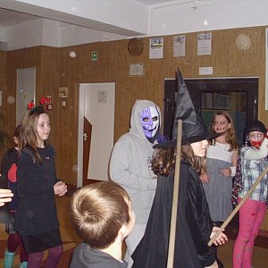 Aby głębiej zrozumieć ten zwyczaj w ostatnim tygodniu października zorganizowaliśmy wieczór Halloween . Z tej okazji spotkało się w naszej szkole wiele mrocznych postaci. Pomimo, iż większość z nich była bardzo upiorna, to tak naprawdę nikt się nie bał. Podziwialiśmy swoje kostiumy, pomysłowość i oryginalność oraz sztukę makijażu, której nie powstydziliby się najlepsi charakteryzatorzy filmowi. Najważniejsze było to, że wokół panowała ekscytacja, dreszczyk emocji oraz było wiele śmiechu i radości. Nad oprawa muzyczna czuwali: Radek Pochopień i Piotr Romanowski. Dobrej zabawie towarzyszyły konkursy m.in. najszybszy lot na miotle, na najciekawsze przebranie. Na zakończenie odbyło się uroczyste wręczenie nagród przez opiekuna Samorządu Uczniowskiego zwycięzcom konkursów oraz podziękowań dla uczniów, którzy chętnie