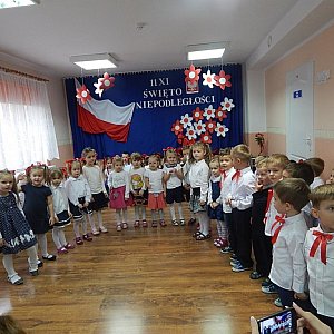 Dzień Niepodległości stał się bardzo radosnym dniem w naszym przedszkolu i mamy nadzieję, że zapadnie on w pamięci wszystkich przedszkolaków. Dzięki udziałowi w tego typu uroczystościach uczymy dzieci patriotyzmu: miłości i przywiązania do kraju ojczystego, jego kultury, tradycji i symboli narodowych.