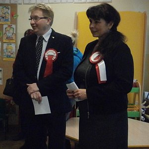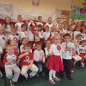 Wspólne śpiewanie z tak ważnym gościem było dla przedszkolaków ogromnym przeżyciem. Dzieci miały również okazję do rozmowy ze swoim gościem na tematy patriotyczne. Nie dały się też zaskoczyć pytaniem p. Tomasza Witkowskiego - czy znają Katechizm polskiego dziecka? Weronika z Jasiem wyrecytowali ten piękny wiersz W. Bełzy, czym mocno wzruszyli zebranych.