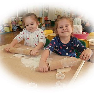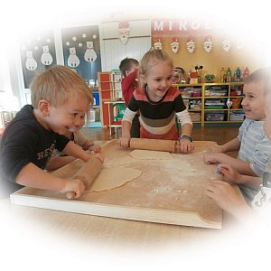Szkolenie na szefa kuchni rozpoczęliśmy od zapoznania się z aromatycznymi przyprawami takimi jak laska wanilii, cynamonu oraz anyżu. Następnie zabraliśmy się za zagniatanie i wałkowanie ciasta, z którego to później nasze sprawne rączki wykrawały foremkami różne kształty. Kolejno nasze ozdoby suszyły się przez kilka dni, po czym zostały pomalowane farbkami i przyprószone magicznym pyłem w postaci brokatu.