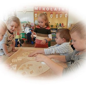 Dzięki pomocy naszych kochanych rodziców mieliśmy również możliwość ozdabiania pierniczkowych ciasteczek, które upiekła nam mamusia naszej koleżanki Agatki. Pierniczki malowaliśmy kolorowym lukrem, przyklejaliśmy rożne ozdoby, a najlepsze było na końcu. Wyjadaliśmy pozostałości kolorowych ozdób i lizaliśmy słodziutki lukier.