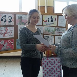Wielu uczniów naszej szkoły zaangażowało się w przygotowanie godnej oprawy tego święta. Artur Pacyna i Grzegorz Tymków z klasy 3b przygotowali audycję radiową i koncert pieśni poświęconych Żołnierzom Wyklętym. Pieśni te towarzyszyły nam podczas przerw. W lutym uczniowie klas drugich i trzecich wzięli udział w konkursie plastycznym poświęconym omawianej tematyce. Laureatkami konkursu zostały: Wiktoria Olszewska z kl 2b, Martyna Pasierska z kl. 3b, Klaudia Szumlakowska z kl. 3c i Katarzyna Chmiel z kl. 3a. Dziewczęta zostały nagrodzone przez panią dyrektor Danutę Stefańską, a ich prace zakwalifikowano do etapu regionalnego Ogólnopolskiego Konkursu "Żołnierze Wyklęci - Bohaterowie Niezłomni". Pozostałe prace konkursowe wzbogaciły wystawę, którą przygotowaliśmy w ramach obchodów wspomnianego święta.