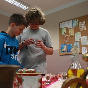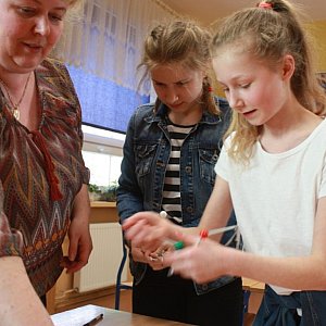 W tym roku spotkanie z szóstoklasistami miało charakter podchodów, podczas który uczniowie połączeni w pary, mieli za zadanie, w jak najkrótszym czasie, wykonać wszystkie zadania przygotowane przez uczniów i nauczycieli naszej szkoły. Każda z par otrzymała mapę i instrukcję, które miały pomóc w poruszaniu się po naszej szkole. Jedno z zadań polegało na pokierowaniu robotem wykonanym z klocków LEGO po specjalnie przygotowanym torze. W gabinecie biologicznym uczniowie mieli możliwość przypomnienia sobie budowy anatomicznej ludzkiego organizmu. Aby ożywić trupa, musieli umieści ludzkie organy wewnętrzne we właściwych miejscach. Matematycy postawili poprzeczkę naprawdę wysoko - aby przejść ten etap zmagań, należało zbudować jak najwyższą wieżę z kuleczek i patyczków.