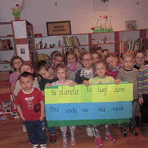 Z ochotą kolorowały obrazki przyrodnicze, wykonywały gazetki z przygotowanych ilustracji oraz rozwiązywały zagadki ekologiczne. Praca przebiegała w grupach, dzieci wspólnie dochodziły do pewnych wniosków, z zaciekawieniem oglądały również książki o tematyce ekologicznej, które p. Bożena im rozdała. Na koniec spotkania dzieci wraz z nauczycielem układały hasła ekologiczne z rozsypanki wyrazowo-zdaniowej. "Bez wody nie ma życia", "Ta planeta to nasz dom". Ze spotkania dzieci wyszły bardzo zadowolone, wzbogacone o nowe doświadczenia.