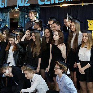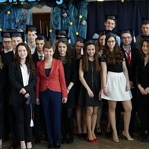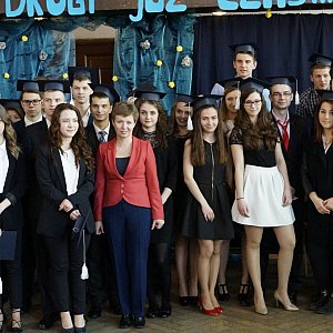 Dnia 29 kwietnia 2016 roku w auli odbyło się uroczyste zakończenie roku klas trzecich. Uroczystość rozpoczęła się od przemówienia Pani Dyrektor Małgorzaty Dyminczuk, która przywitała zaproszonych gości, rodziców, nauczycieli oraz naczelnika Wydziału Oświaty Pana Mariusza Bochenka, następnie podziękowała uczniom za spędzone razem trzy lata, a także życzyła powodzenia w dalszym życiu.