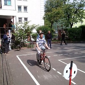 Podwórko Zespołu Szkół Specjalnych w Opolu zamieniło się dziś w plac manewrowy dla rowerzystów. Ci popisywali się zręcznością w jeździe na rowerze, znajomością znaków drogowych, umiejętnością udzielania pierwszej pomocy.