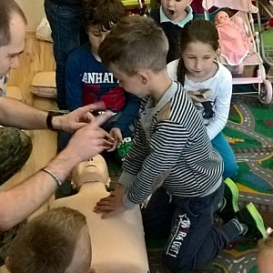 W zajęciach brały udział przedszkolaki i uczniowie kl.1-4. Dowiedzieliśmy się m.in. jak umiejętnie wezwać pomoc z użyciem numeru 112, jak sprawdzić funkcje życiowe, ułożyć poszkodowanego w pozycji bocznej ustalonej, przeprowadzić resuscytację krążeniowo-oddechową, jak postąpić w przypadku omdlenia czy krwotoku. W ćwiczeniach mieliśmy okazję korzystać z fantomów i telefonów, które otrzymaliśmy od Fundacji Jerzego Owsiaka w ramach ogólnopolskiego programu profilaktycznego "Ratujemy i uczymy ratować". Wszyscy aktywnie i z dużym zainteresowaniem uczestniczyli w ćwiczeniach.