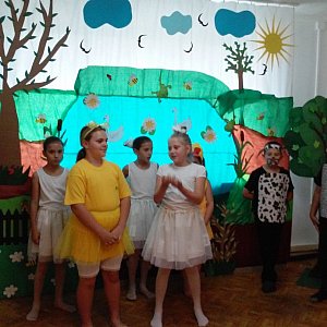 30 czerwca jedna z sal "Przystani" zamieniła się w teatr. Któż nie zna losów brzydkiego kaczątka, z którego wyrósł piękny łabędź. Jednak znany motyw przedstawiony w niezwykle ciekawej formie zachwycił gości. Dzieci z ogromnym zaangażowaniem wcieliły się w swoje role. Na tle pięknej dekoracji opowiedziały historię, która bawiła i wzruszała. Urzekał taniec łabędzi, poruszały łzy odrzuconego przez wszystkich brzydkiego kaczątka, wielkie emocje budziło zachowanie mieszkańców baśniowego podwórza. Nikt z widzów nie pozostał obojętny, oglądając ten wyjątkowy spektakl. Niewątpliwie odczuwało się, że dzieci wkładają w grę całe serce, dziękując w ten sposób wszystkim darczyńcom świetlicy: