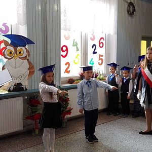 Poprzez akt pasowania zostają pełnoprawnymi członkami społeczności szkolnej. W ubiegłym tygodniu to radosne przeżycie stało się udziałem 20 przejętych dzieciaków, które w świeżutko odprasowanych galowych strojach, z misternie uplecionymi warkoczykami, równiutko przystrzyżoną grzywką zgromadziły się w holu, by zaprezentować dotychczas zdobyte umiejętności i zasłużyć na zaszczytne miano ucznia Publicznej Szkoły Podstawowej nr 5. Szyku i powagi nadawały im zawiązane pod szyją eleganckie niebieskie kokardy i błyszczące birety na główkach, a otuchy dodawało wspierające spojrzenie pani wychowawczyni - Magdaleny Dychus.
