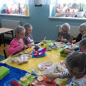 Oczywiście zostały one później zjedzone ze smakiem przez naszych małych kucharzy. Nie zabrakło również zbaw edukacyjnych oraz piosenek o tej tematyce. Podczas całej akcji panowała atmosfera życzliwości i koleżeństwa.