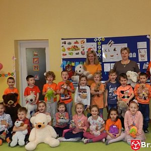 Dzisiaj w każdym sklepie z zabawkami możemy natknąć się na pluszowe misie. Nie można wyobrazić sobie świata bez uroczego, łagodnego misia. Dlatego nasze przedszkole zaprosiło do siebie na tydzień pluszowe misie, aby razem z przedszkolakami spędziły wesoły czas. Przez cały tydzień dzieci w towarzystwie swoich przytulanek brały udział w zabawach dydaktycznych, słuchaniu misiowych bajek, quizach, konkursach i tworzeniu prac plastycznych. W poszukiwaniu misiowej literatury dzieci wychodziły do bibliotek, a starsze grupy przygotowywały miodowe przysmaki. Finałem misiowego zawrotu głowy, był Bal Pluszowego Misia, który odbył się 25 listopada. Stawiły się na niego wszystkie pluszaki wraz ze swoimi właścicielami. Każda grupa zadbała o strój w wybranym kolorze. Do muzycznych zabaw i konkursów zaprosił dzieci, nie kto inny jak Kubuś Puchatek we własnej osobie i jego przyjaciel Tygrys. Całe przedszkole tańczyło w rytmach misiowych przebojów . Dla łakomczuszków, Kubuś zorganizował miodek do "wylizywania" na czas oraz miodowe kuleczki do nawlekania. Na pożegnanie wesoły klaun obdarował wszystkie przedszkolaki misiowymi słodkościami . Puchatek, Coralgol, Paddington, Miś Uszatek, Yogi, Rupert, Brat Niedźwiedź, Mały Miś, Troskliwe Misie i Gumisie wróciły do domu, ale już za rok ponownie zaprosimy ich na bal.