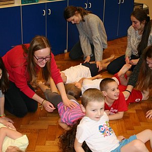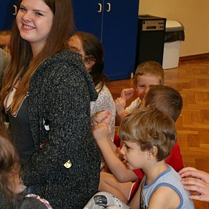 W grudniu zajęcia odbyły się w przedszkolu w grupie IV. Młodzież z II LO pod opieką p. Doroty Toporowskiej aktywnie uczestniczyła w zajęciach z przedszkolakami. Dzieci były bardzo dumne, że mają starsze koleżanki, a młodzież wyzwoliła w sobie instynkty opiekuńcze. Przez całą godzinę lekcyjną słychać było w przedszkolu śmiechy, które towarzyszyły zabawom i masażykom. Wszystkim dopisywał dobry humor, a wspólna zabawa wyzwalała tylko pozytywne odczucia.