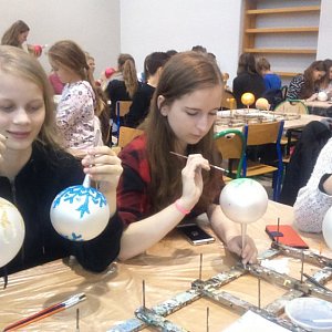 6 grudnia uczniowie klasy: 2A, 2B oraz 3B wraz z opiekunami: Małgorzatą Niewczas i Iwoną Denes uczestniczyli w warsztatach artystycznych w Zespole Szkół Ekonomicznych w Brzegu. Każdy uczestnik otrzymywał bombkę, którą następnie należało ozdobić według własnego pomysłu.