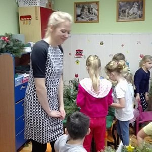 W piątek 9 grudnia 2016 roku już od samych drzwi naszego przedszkola unosił się przepiękny zapach igliwia. W tym dniu gościliśmy panią Agatę Nalewaj, zajmującą się rękodziełem artystycznym, która poprowadziła warsztaty robienia stroików bożonarodzeniowych.