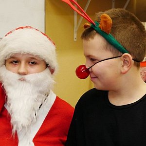 i diabełkami (w tej roli uczniowie: Kamil Zalewski, Tomasz Marciniak, Michalina Zalewska, Magdalena Wittke, Roksana Golonka, Kamil Kopij, Daria Sadlej). Przybył ze swoją świtą na wezwanie zawarte w listach napisanych do niego przez dzieci, a także samego Samorządu Uczniowskiego SP. Jakże miło było usłyszeć w trakcie lekcji czarodziejski dzwonek przybysza z Laponii. Mikołaj (w tej roli Kacper Soboń) najpierw zawitał do klas najmłodszych, sprawdził wraz ze swoim sekretarzem - Kamilem Kopijem, czy wszystkie dzieci były grzeczne, posłuszne rodzicom i czy pilnie się uczyły. Dopiero po wysłuchaniu opowieści najmłodszych, wierszyków i piosenek wręczył upragnione prezenty- paczki ze słodkościami. Następnie odwiedzał kolejno klasy: czwartą, piątą i szóstą, nic się nie ukryło przed czujnym okiem Mikołaja. Święty był oczarowany tak miłym powitaniem i występem dzieci, w nagrodę wszystkim rozdał paczki i podarunki ze słodyczami. Mikołaj również został obdarowany przez dzieci, otrzymał podziękowania oraz życzenia długiego zdrowia. Jednak w tym dniu to nie był koniec atrakcji. Najmłodsi uczniowie wzięli udział w Mikołajkowym Konkursie Mikołajkowy Recytatorskim i Wokalno - Instrumentalnym. W Konkursie Recytatorskim startowało 24 uczestników z klas I-III. Uczniowie sami wybierali sobie wiersz i pod okiem rodziców przygotowywali się do występu. Podobnie w konkursie wokalnym i instrumentalnym. Komisja oceniająca miała nie lada orzech do zgryzienia, gdyż wszyscy recytatorzy bardzo się starali wygłosić i zaprezentować swój wiersz i utwór jak najpiękniej. Ostatecznie jury przyznało: W konkursie recytatorskim