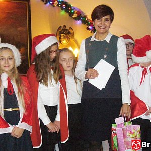 Spotkanie przedświąteczne emerytowanych nauczycieli zrzeszonych przy Związku Nauczycielstwa Polskiego o/ Brzeg było szczególnie wzruszające, bo odwiedziło nas dwadzieścia pięć św. Mikołajów z kl. III c Publicznej Szkoły Podstawowej nr 5 w Brzegu. Prezentami była dziecięca radość, wierszowane życzenia i kolędy w nowych aranżacjach. Białe pompony na czerwonych czapkach wesoło podskakiwały, a od energicznej choreografii dwie stojące obok choinki w "Ratuszowej" tańczyły jak żywe. Uśmiechali się nauczyciele i gromko bili brawa, mając w myślach szkolne wspomnienia.
