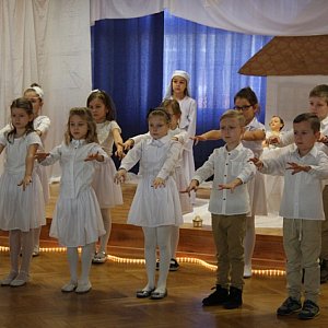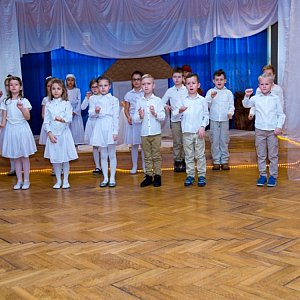 Opowiedzieli zebranym gościom: panu burmistrzowi Jerzemu Wrebiakowi, pani przewodniczącej Rady Miejskiej Brzegu Barbarze Mrowiec, księdzu proboszczowi Marcinowi Czerepakowi, dyrekcji, nauczycielom, pracownikom socjalnym i emerytom historię narodzin Jezusa. Zrobili to w niecodzienny sposób - użyli bowiem języka migowego. Jak się okazało można bez słów przedstawić znaną wszystkim historię z Ewangelii, wzruszyć widzów, a nawet wycisnąć łzy przejęcia. Wszyscy zebrani bardzo mocno przeżyli przedstawienie, czego wyrazem były gorące brawa dla małych aktorów i ich nauczycielek - pani Anny Nowackiej i pani Marioli Mesjasz - Walas. Po występach uczniów głos zabrali goście: pan burmistrz Jerzy Wrębiak, pani Barbara Mrowiec oraz ksiądz proboszcz. Wspólnie przekazali także życzenia uczniom ich rodzicom i nauczycielom. Życzyli zdrowia, radości z narodzin małego Jezusa, spełnienia marzeń, spokoju oraz Bożego błogosławieństwa. Podsumowaniem tych życzeń stały się słowa pani dyrektor Anny Krokosz, która odwołała się do mądrości świętej Matki Teresy z Kalkuty: "Miej czas na to, aby pomyśleć - to źródło mocy. Miej czas na modlitwę - to największa siła na ziemi. Miej czas na uśmiech - to muzyka dla duszy".