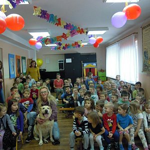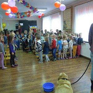 Zaangażowanie przedszkolaków i ich rodziców tak jak poprzednio, było bardzo duże. Przedszkolaki miały również okazję pogłębić swoją wiedzę na temat milusińskich podczas spotkania (18 stycznia) z panią Agnieszką Buczyńską - Prezesem Brzeskiego Towarzystwa Miłośników Zwierząt, której to towarzyszył przemiły i bardzo grzeczny pies o imieniu Pako. Dzieci dowiedziały się, jak należy dbać o zwierzęta, co to za miejsce schronisko, jak należy pomóc zwierzętom tam mieszkającym. Poznały również sposoby obrony w razie ataku przed nieznajomymi zwierzętami. Wizyta pieska dała dzieciom wiele radości i była doskonałą lekcją wrażliwości. Wszystkie zebrane dary przekazaliśmy na ręce naszego gościa.