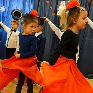 Taniec to ulubiona aktywność artystyczna Naszych przedszkolaków, dlatego też wytańczyliśmy twista oraz tango. Wielokrotnie na sali wybuchały salwy śmiechu, ale również pojawiło się wiele łez wzruszenia i dumy. Bardzo dziękujemy wszystkim za liczne przybycie na Naszą uroczystość. Serdecznie gratulujemy wspaniałych wnuków.