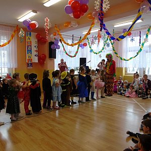 Dzieci przebrane były za bohaterów znanych bajek, w salach przedszkolnych można było spotkać wróżki, królewny, delikatne motylki, rycerzy, piratów, policjantów, nie sposób zliczyć i wymienić te wszystkie postacie. Rozpoznać dzieci było bardzo trudno. Przedszkolaki miały możliwość pozowania do zdjęcia grupowego oraz zdjęć indywidualnych. Wszyscy bawili się wesoło, uśmiech nie znikał z twarzy mimo chwilowego zmęczenia. W tym roku okazje do wspólnego balu w naszym przedszkolu mieli przyszli przedszkolacy, którzy przybyli razem ze swoimi rodzicami. Kiedy czas zabawy dobiegł końca dzieci z żalem opuszczały salę balową. Bal umożliwił dzieciom i wychowawcom spędzenie czasu w miłej atmosferze, a wspólna zabawa przyniosła wiele radości naszym wychowankom. Dziękujemy dzieciom i rodzicom za zaangażowanie w przygotowanie pięknych balowych strojów.