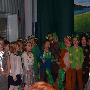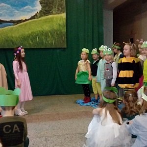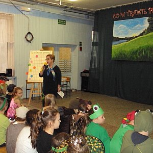 Uczniowie klas I - III, prześcigając się wręcz w kreatywności i pomysłowości, pozwolili rozwikłać niejedną tajemnicę i dociec CO W TRAWIE PISZCZY. Wszystkich uczestniczących w podsumowaniu projektu zachwycił fakt różnorodności form przekazu treści . Były inscenizacje, ruch z muzyką, śpiew, teatr KAMISHIBAI, pokaz mody ubranych w niezwykle oryginalne stroje mieszkańców Doliny Bagiennej Trawy oraz zagadki, łamigłówki, krzyżówki, sprawdzające znajomość treści książki.