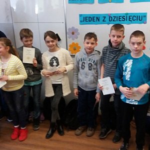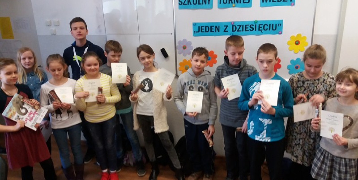 Prowadząca Aleksandra Skowronek wcieliła się w rolę Tadeusza Sznuka i wzorem 3 etapowego turnieju "Jednego z 10" zadawała uczniom pytania z różnych dziedzin naukowych, w szczególności matematyki i przedmiotów przyrodniczych np. ile razy obwód koła jest większy od jego średnicy, "jak nazywa się miejsce, do którego nie dociera światło", "ile wynosi 3 podniesione do potęgi zerowej" lub "ile noga ma krzeseł". Ostatecznie I miejsce w szkole podstawowej zajęła Amelia Jaroszuk, a w gimnazjum Piotr Rosiński. Turniej stał się okazją do bezbolesnego przyswojenia zarówno przez uczestników jak i publiczność dużej dawki wiedzy matematyczno - przyrodniczej i przede wszystkim dobrej zabawy.