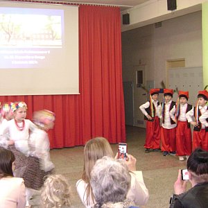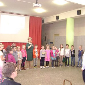 Pani dyrektor - Beata Kulbaka przedstawiła bogatą ofertę zajęć lekcyjnych i zajęć dodatkowych, prowadzonych przez kompetentną i zaangażowaną emocjonalnie w swoją pracę kadrę, ale również pokazała Gościom panujący w szkole klimat życzliwości, otwartości i akceptacji indywidualności każdego ucznia. Przedszkolaki i ich rodzice obejrzeli próbkę działalności artystycznej w wykonaniu uczniów klasy pierwszej i drugiej. Były popisy oratorskie laureatów konkursu recytatorskiego oraz żywiołowe wykonanie krakowiaka z obowiązkowymi hołubcami. Zebrani gromkimi brawami nagrodzili małych artystów, podziwiając niekwestionowane talenty. Następnie na hasło pani dyrektor utworzył się długi pociąg rezolutnych przedszkolaków, pan maszynista dał sygnał do odjazdu i dzieci pod opieką nauczycieli opuściły hol szkoły, by w czterech grupach zadaniowych wziąć udziałw przygotowanych dla nich zajęciach tematycznych - sportowych, teatralnych, plastycznych i zajęciach z tablicą multimedialną. W tym czasie pani dyrektor odpowiadała na pytania rodziców i rozwiewała ich obawy, związane z pójściem dzieci do szkoły. Po spotkaniu ogólnym w holu szkoły goście mogli porozmawiać indywidualnie z panią dyrektor - Beatą Kulbaką, panią wicedyrektor - Ewą Niemczyk, pedagogiem szkolnym - panią Alicją Zalewską i uczącymi w szkole nauczycielami.