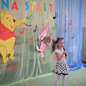 8 kwietnia w naszym Przedszkolu już po raz VIII spotkali się przedstawiciele brzeskich przedszkoli, aby uczestniczyć w Międzyprzedszkolnym Konkursie Piosenki "TALENTY NA START- Witajcie w naszej bajce". W tym roku nasz konkurs miał charakter bajkowy i nawiązywał do przypadających w maju dni książki. Celem tego muzycznego przedsięwzięcia było propagowanie literatury dziecięcej wyrażonej poprzez zdolności i umiejętności wokalne dzieci. Występy solistów poprzedził taniec dzieci z grupy IV.